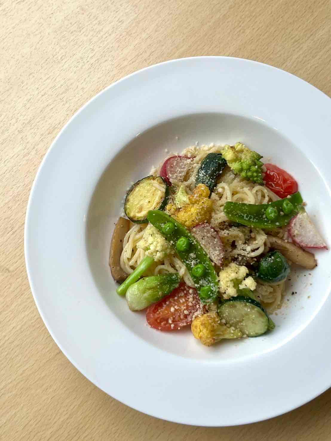 塩麹の優しい旨みとニンニクの香りをじっくり移したオイルをつかい、 シンプルなのに奥深い味わいに仕上げました。 旬の野菜もたっぷりとれ、 体が喜ぶグルテンフリーパスタです。